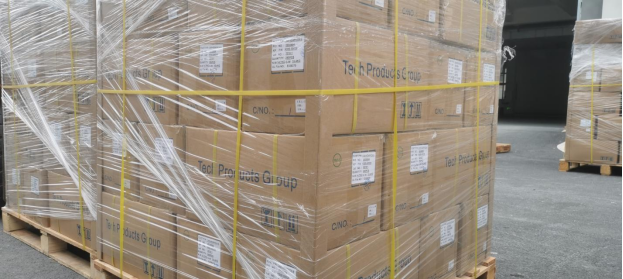 (我们看了是近20个有托盘电子产品要装上拖挂车)